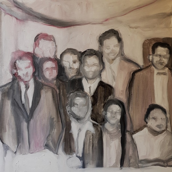 For the older generation, paintings, like The Birthday Party II (featured image) and Untitled (below) can create nostalgic memories of large family gatherings, while for younger viewers they may offer a glimpse of a past that they do not know. She believes that in this post-colonial moment, many young people are interested in ‘excavation’ and discovering more about who they are and where they come from. She states, “now… more than ever, work is being done to understand the past, understand the legacies of Apartheid, or indenture or Empire, or even family. A lot of young people are making this kind of work that resonates with me in the thirst to unearth or to understand”(Pillay).